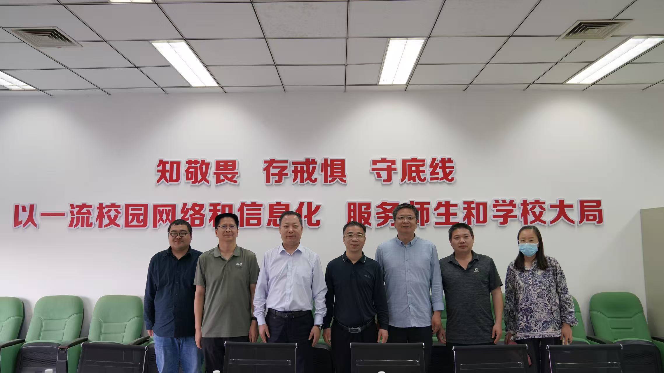 在陈刚等相关负责人的陪同下,夏冬晴一行走访参观了郑州大学的计算机教学实验区、网络运维中心、教育科研网郑州节点服务安全中心、数据机房等。
