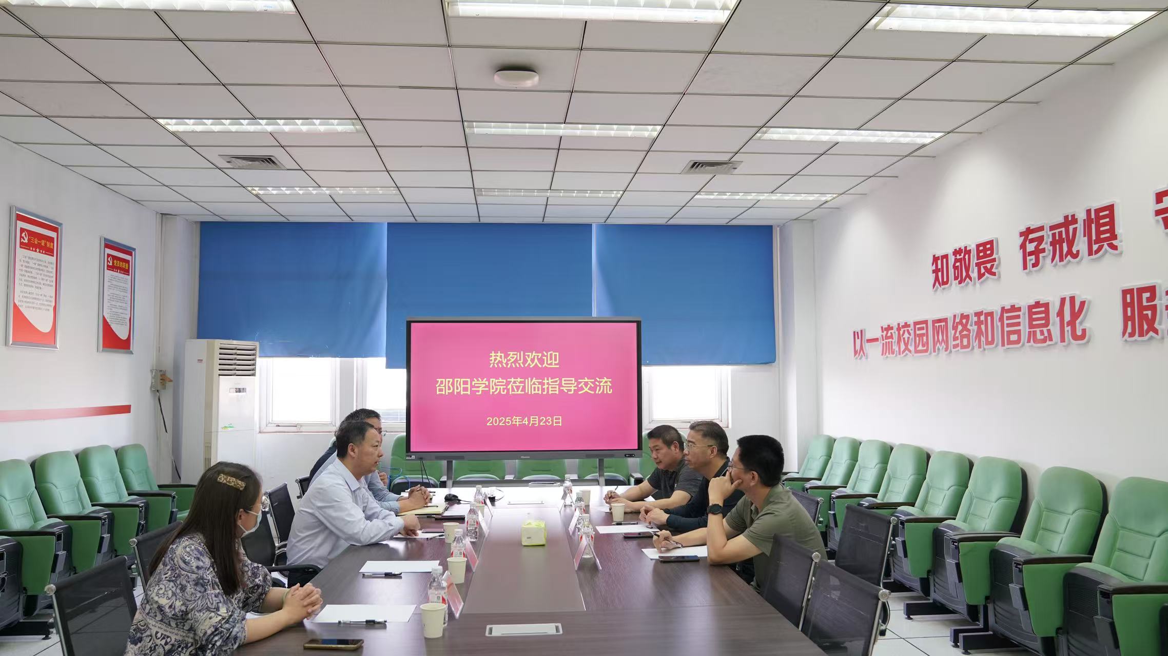 4月23日下午,邵阳学院信息与网络中心主任夏冬晴、副主任雷军程、网络运维科科长李首洪一行,赴郑州大学学习交流高校信息化建设工作。郑州大学信息化办公室、网络管理中心副主任郭文理、河南省教育科研计算机网网络中心副主任陈刚热情接待并参加交流活动。