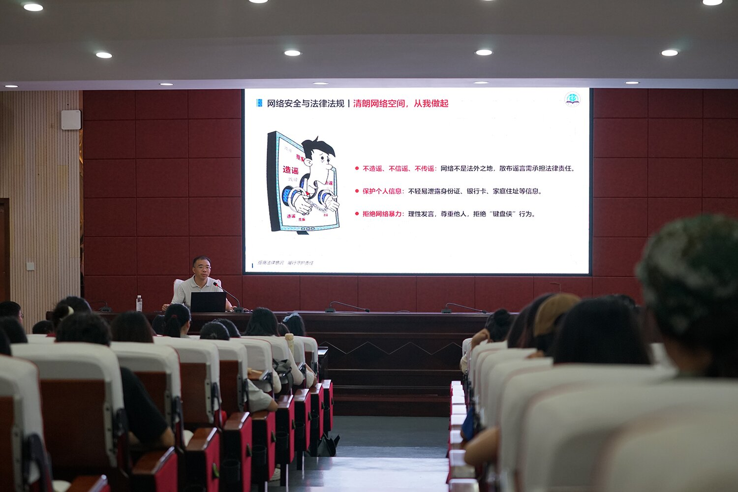 9月17日上午,在七里坪校区润德楼报告厅举办网络安全专题教育培训讲座,信息与网络中心主任夏冬晴就法律法规、网络意识形态安全进行宣讲,副主任雷军程就网络安全防护专题进行培训。法商学院、护理学院共计近200名学生参与听课、讨论和交流。