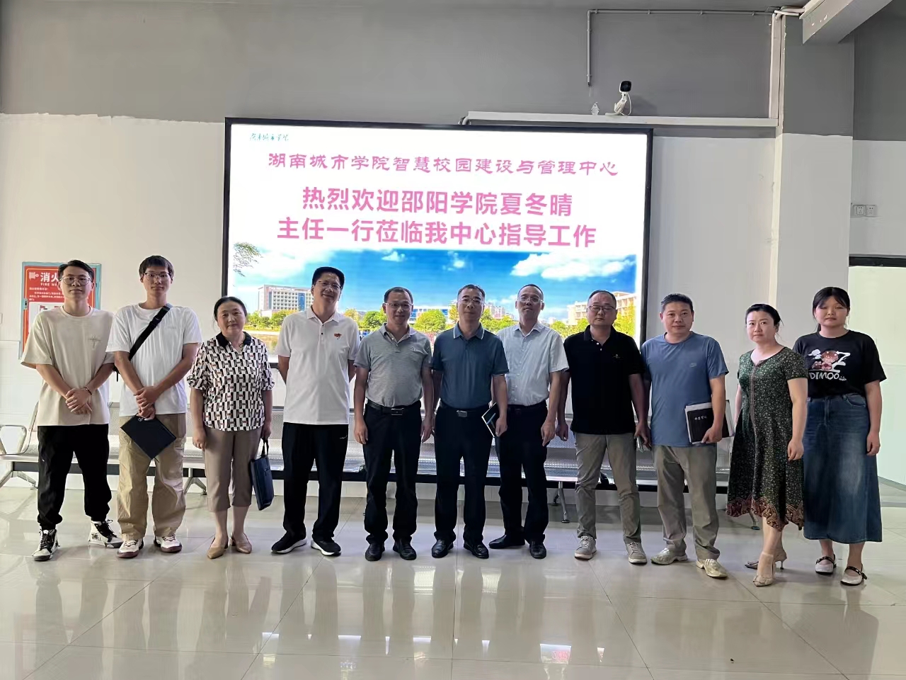9月25号,邵阳学院信息与网络中心主任夏冬晴、副主任雷军程等一行5人,赴湖南城市学院智慧校园建设与管理中心学习交流高校信息化建设工作。湖南城市学院智慧校园建设与管理中心主任周新邵及中心全体成员出席交流活动。