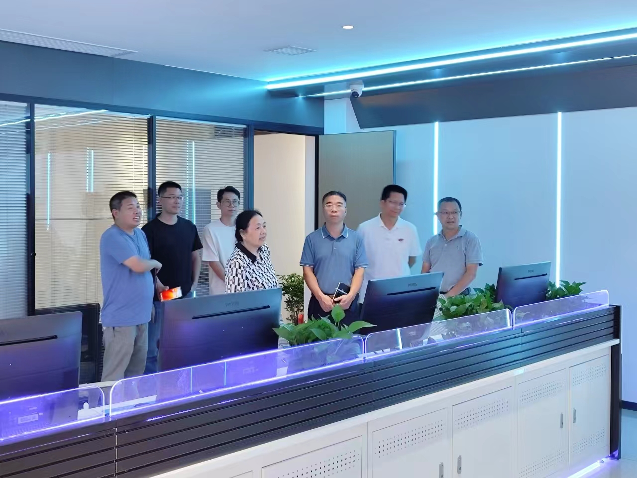 在周新邵主任等人的陪同下,夏冬晴一行对湖南城市学院的核心机房、数据机房、监控中室、中控进行了参观。