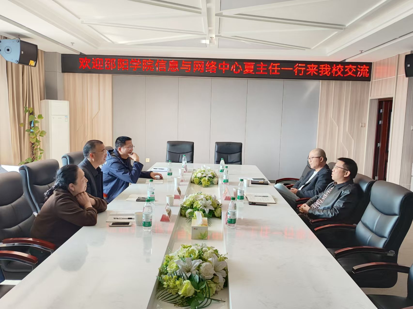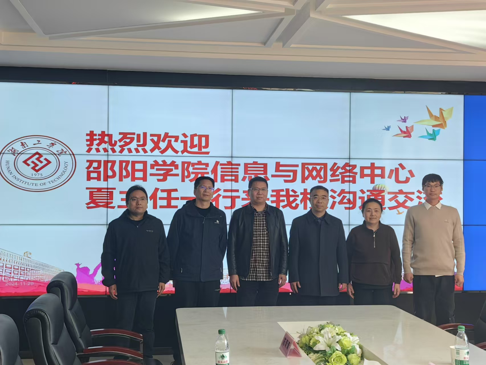 11月28日,邵阳学院信息与网络中心主任夏冬晴、副主任雷军程等一行4人,赴湖南工学院智慧校园建设与管理中心学习交流高校信息化建设工作。湖南工学院智慧校园建设与管理中心主任黎昂及中心全体成员参加交流活动。