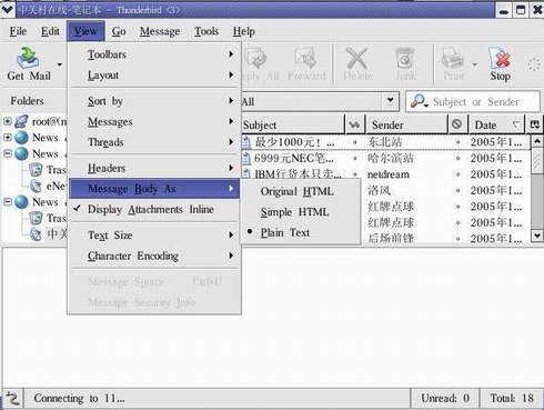 图5 以纯文本方式阅读雷鸟电子邮件
