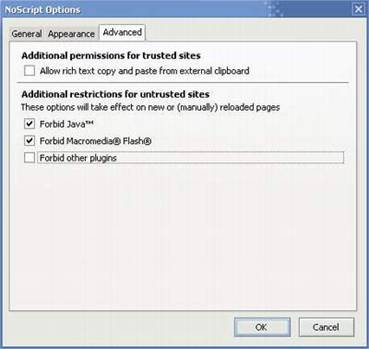 图6 NoScript配置界面
