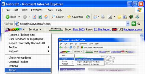 2004年互联网服务厂商Netcraft已经发布了它自己的IE安全工具插件。这款插件能够帮助IE 用户免受钓鱼式欺诈攻击。Netcraft Toolbar能够封杀由其他用户报告的钓鱼式欺诈网站。
