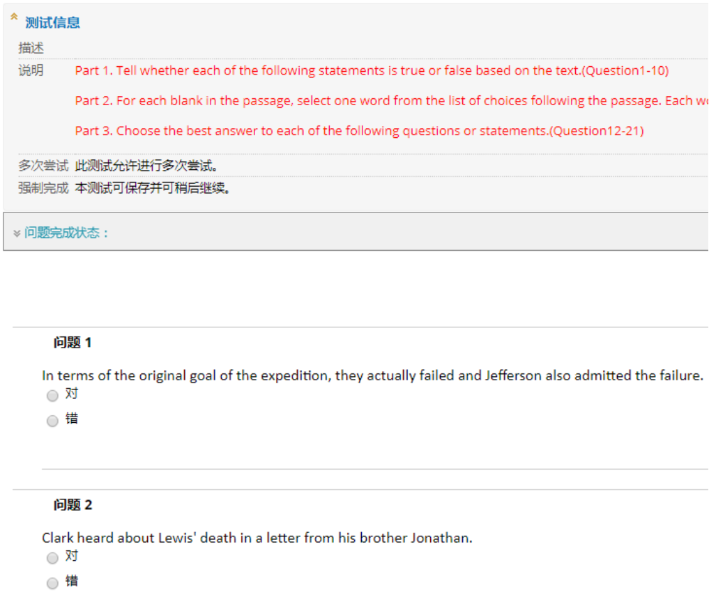 在线测试设计(图片来源:大学英语(四)主讲:大学英语教研室)