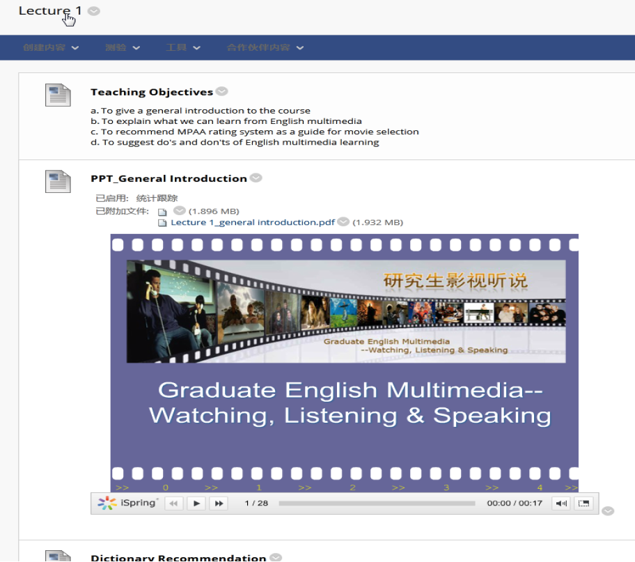 教学课件设计(图片来源:研究生英语影视听说主讲教师:程英)