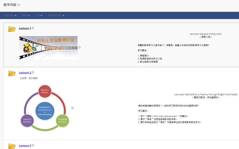 教学内容文件夹设计(图片来源:研究生英语影视听说程英)